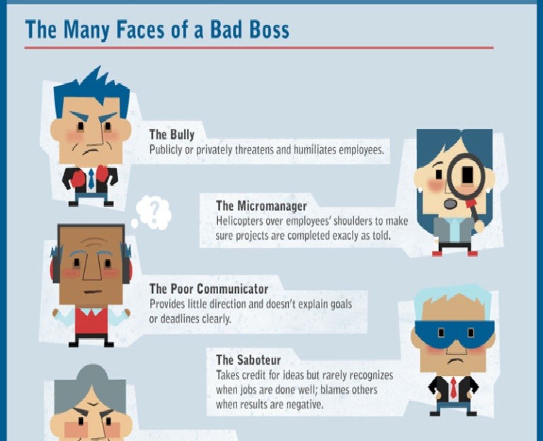 Understanding the composition of a bad boss and the impact on employee health from working with them is explained in the infographic: